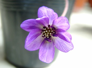両親とも桃色弁なのに薄紫の花が出た。今のところ地味だが経年変化するか?